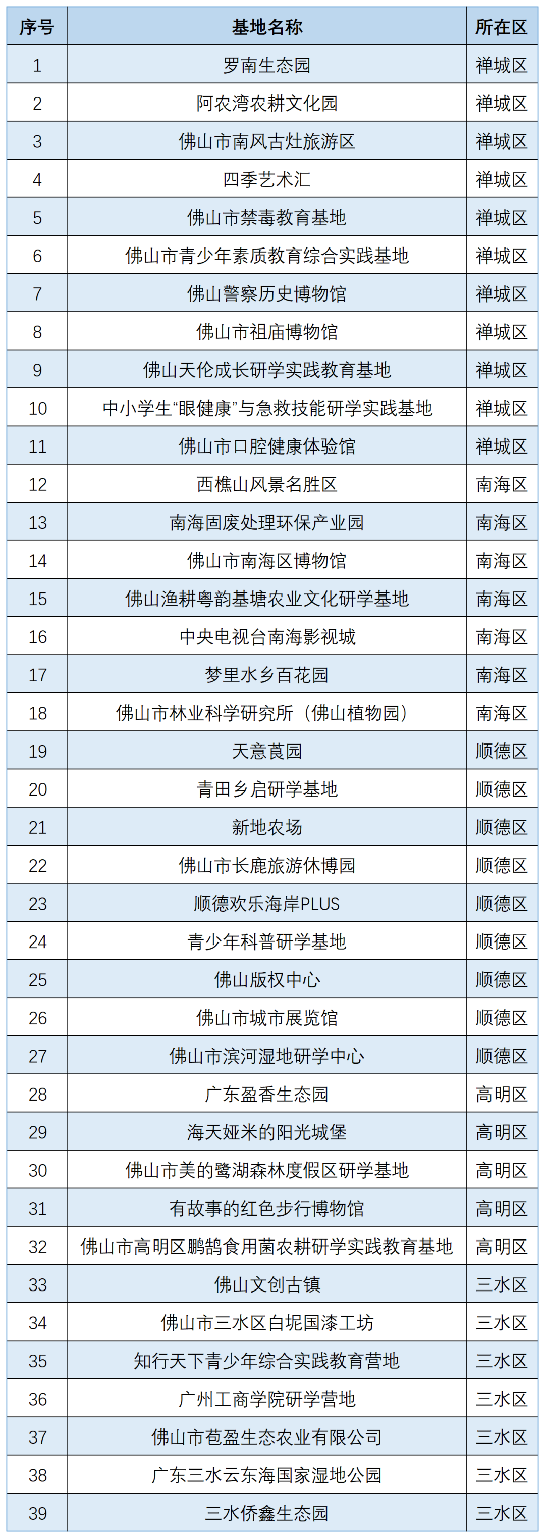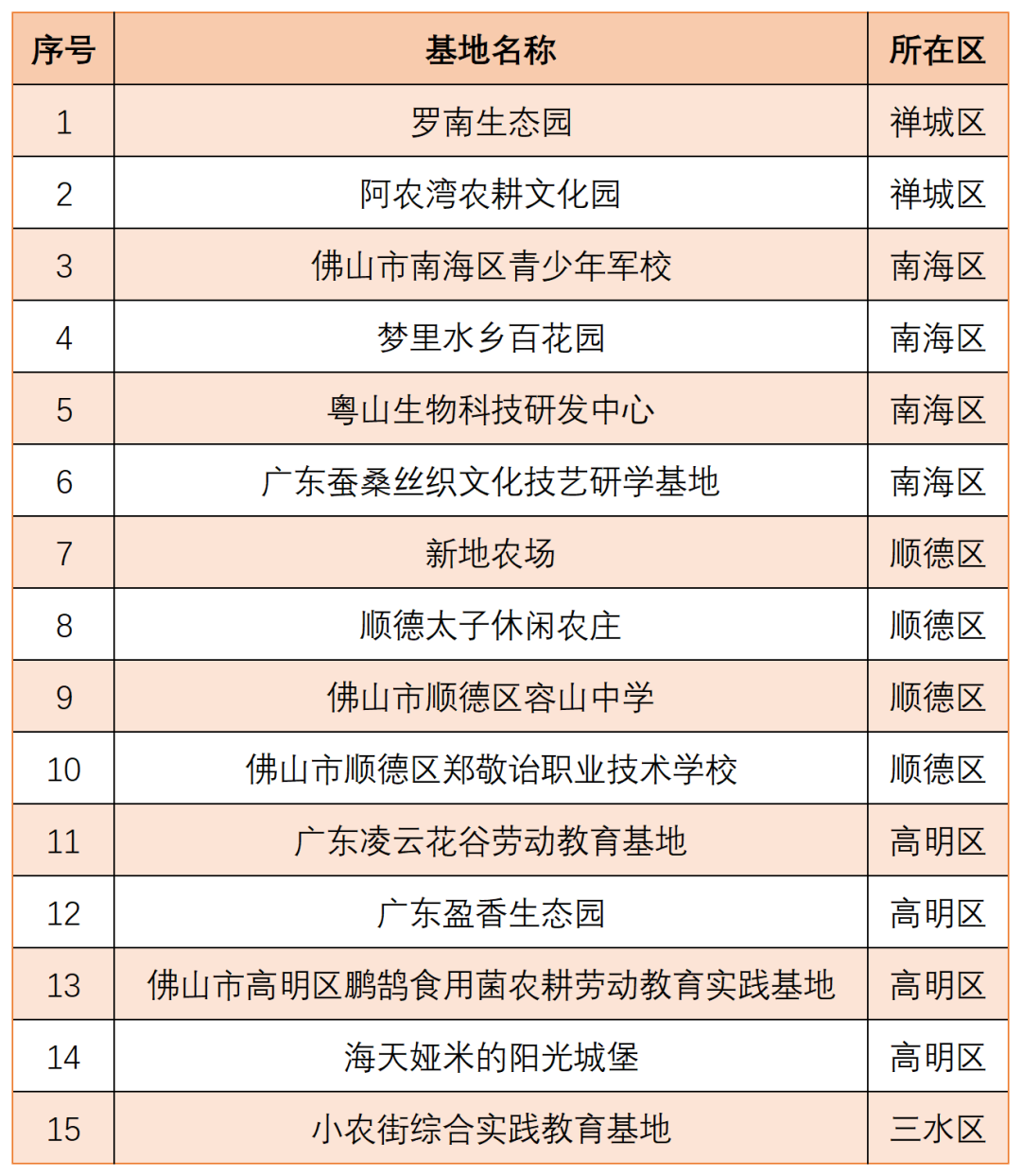 佛山中小学生劳动教育实践基地和研学实践教育基(营)地名单公布!