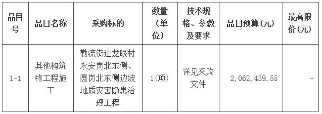 合同包1(勒流街道龙眼村永安岗北东侧、圆岗北东侧边坡地质灾害隐患治理工程):