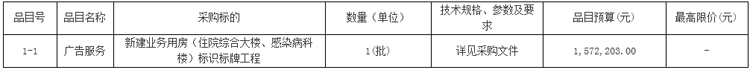 项目名称:新建业务用房(住院综合大楼、感染病科楼)标识标牌工程(二次)