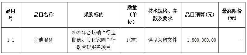2022年杏坛镇“行走顺德、美化家园”行动管理服务项目采购项目的潜在供应商应在广东省政府采购网https://gdgpo.czt.gd.gov.cn/获取采购文件,并于 2022年06月27日 09时30分 (北京时间)前提交响应文件。