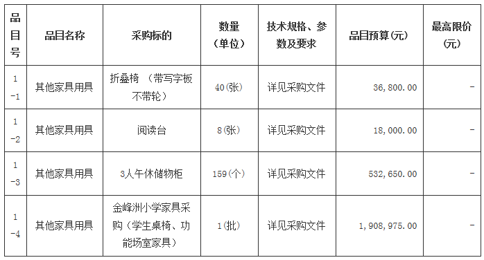 项目名称:金峰洲小学家具采购(学生桌椅、功能场室家具)