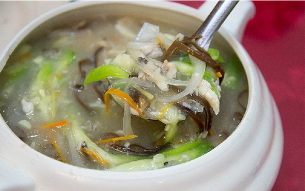 无论什么时节,顺德妈妈就爱煮各种汤羹。将鱼煎香后拆出鱼骨成为鱼茸,再把鱼骨熬汤,加入鱼茸、胜瓜丝、冬菇丝、蛋丝、腐皮丝、粉丝等辅料推薄芡做成顺德拆鱼羹。清甜美味,营养健康。炎炎的天气,喝一碗拆鱼羹,超正!