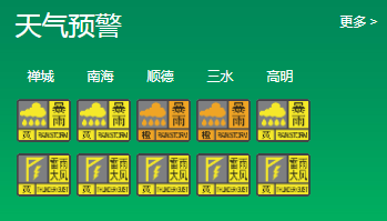 佛山市气象台6月15日18时30分发布,过去3小时我市出现暴雨,伴有8级左右阵风,三水南山录得最大累积雨量63毫米,目前强雷雨云团正影响顺德区,顺德区,三水南山、大塘、芦苞暴雨橙色预警信号、我市其余镇街暴雨黄色预警信号和各区雷雨大风黄色预警信号正在生效。