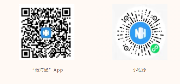 扫描下方其中一个二维码,登录“南海通”APP或“佛山南海通”小程序