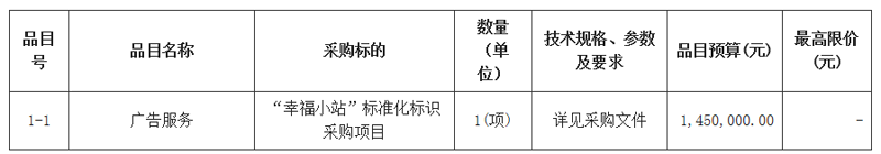 “幸福小站”标准化标识采购项目采购项目的潜在供应商应在广东省政府采购网https://gdgpo.czt.gd.gov.cn/获取采购文件,并于 2022年06月29日 09时30分 (北京时间)前提交响应文件。