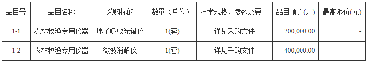 项目名称:农检中心设备购置(原子吸收光谱仪、微波消解仪)