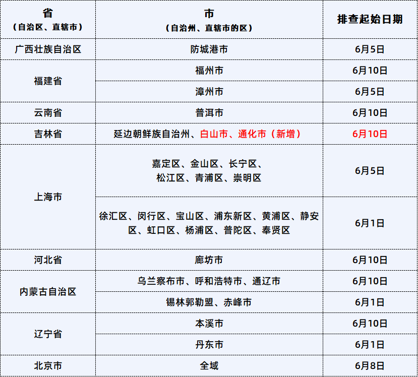 吉林省:延边朝鲜族自治州、白山市、通化市集安市(新增)