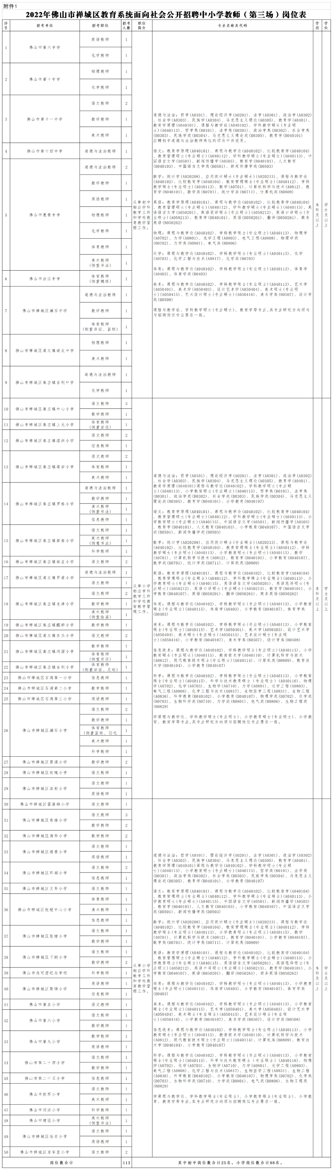 1. 2022年佛山市禅城区教育系统面向社会公开招聘中小学教师(第三场)岗位表