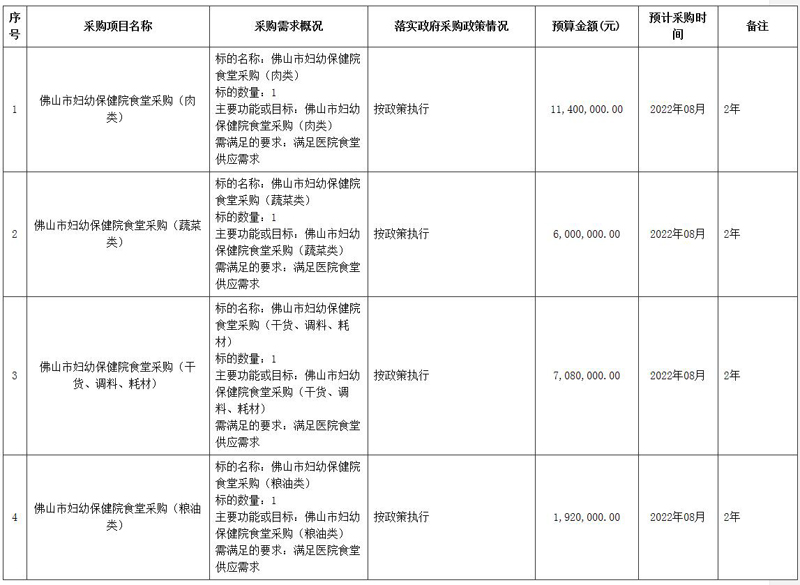 佛山市妇幼保健院2022年06月至2022年08月政府采购意向