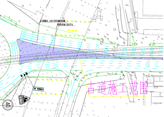 施工内容为非机动车道及绿化带提升,需占用辅道两侧非机动车道及两条机动车道。