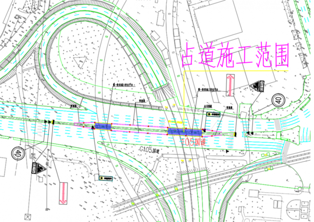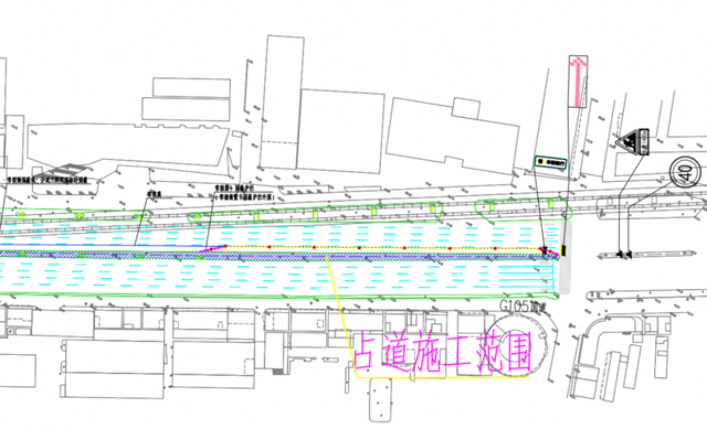 105国道(佛陈路圆盘-碧江收费站)占道施工,途经此路段车辆根据现场标志指示通行。