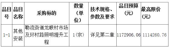 采购包1(勒流街道龙眼村市场及环村路照明提升工程采购工程):