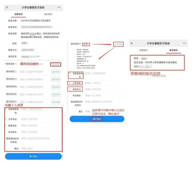3.报名学生请填写可使用的联系电话,确保能及时对接实习情况。