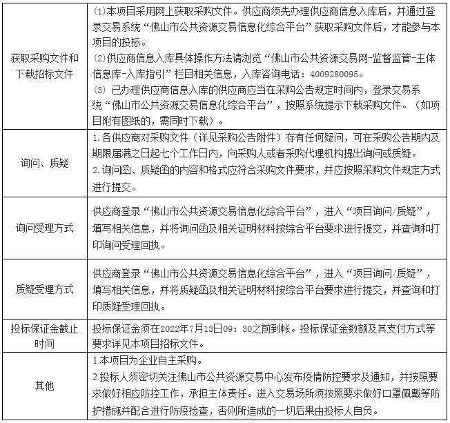 供应商须按照采购文件要求,登录佛山市公共资源交易信息化综合平台进行网上获取采购文件和递交纸质投标文件。