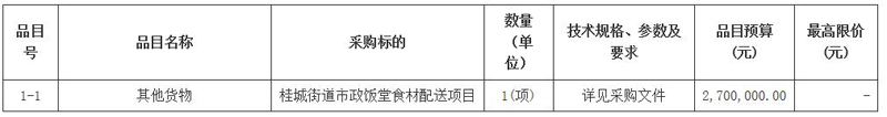 项目名称:桂城街道市政饭堂食材配送项目