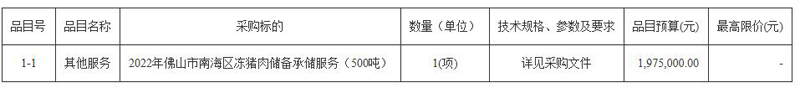 项目名称:2022年佛山市南海区冻猪肉储备承储服务项目(二次)