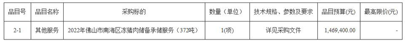 南海区冻猪肉储备承储服务项目(二次)竞争性谈判公告