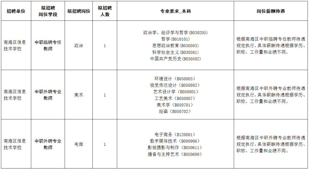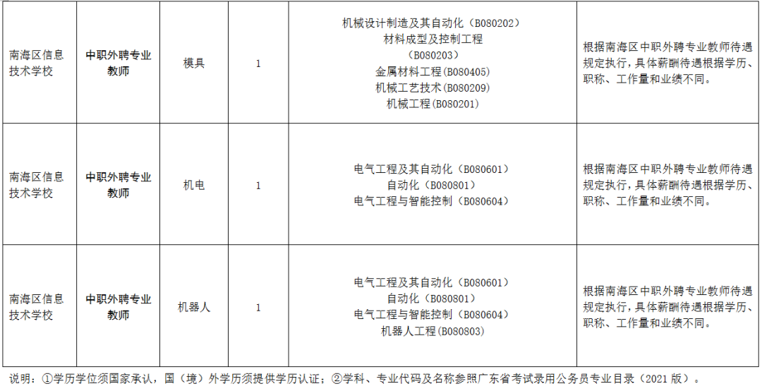 3.报名所需材料:《南海区教育系统公办学校招聘编外教师报名表》、近期免冠一寸彩色照片、本人身份证、毕业证、学位证、职称证及相关资历证明复印件。(报名材料以电子形式进行报送,报送邮箱:415256759@qq.com,资格审核通过后,原件于考试前核查)