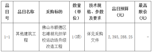 顺德区右滩胡兆炽学校运动场升级改造工程竞争性磋商公告