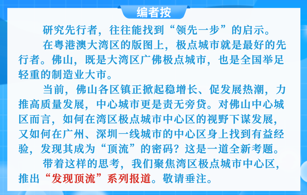 面对湾区极点城市新一轮制造业回城和科创都市化热潮,佛山作为全国唯一的国家制造业转型升级综合改革试点城市,更应顺应发展趋势,树立起自己的都市工业和科创高地标杆,积极参与大湾区产业集群发展。
