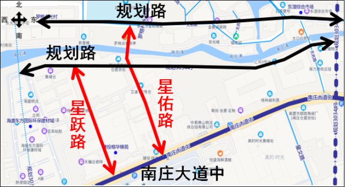 八、星跃路:位于南庄镇,南起南庄大道中、北至规划路,大致呈南北走向,全长约302米,规划宽度为14米,城市支路。