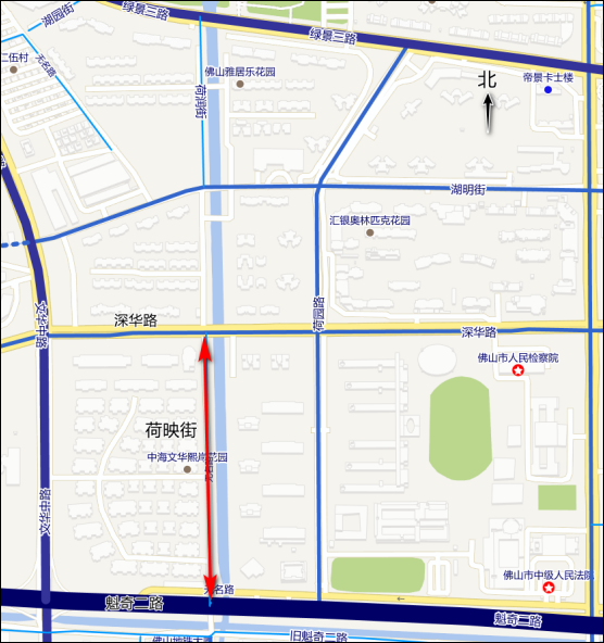 五、荷映街:位于石湾镇街道,南起魁奇二路、北至深华路,呈南北走向,全长约454米,规划宽度为15米,城市支路。