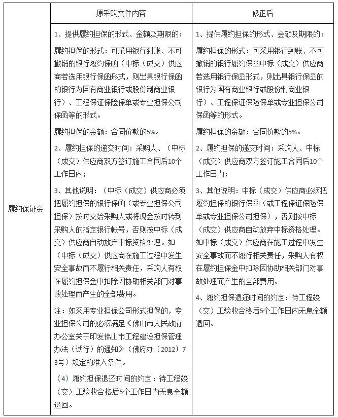更正原因:对采购文件“第二章 采购需求”和合同中关于履约保证金内容进行修正。