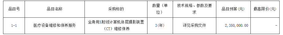 合同包1(全身用X射线计算机体层摄影装置(CT)维修保养):