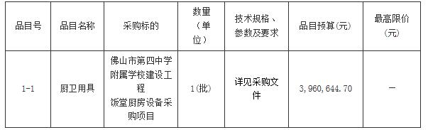 项目名称:佛山市第四中学附属学校建设工程饭堂厨房设备采购项目