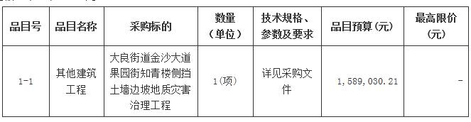 合同包1(大良街道金沙大道果园街知青楼侧挡土墙边坡地质灾害治理工程):