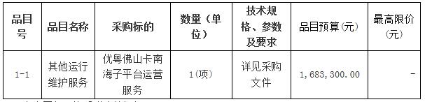 优粤佛山卡南海子平台运营服务竞争性磋商公告