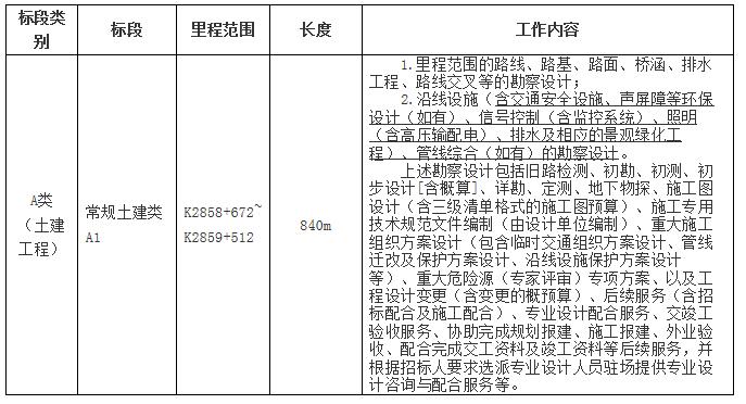 (4)其它配合工作(包括清单预算、工程量三级清单、施工专用技术规范文件编制等):根据招标人要求提交。