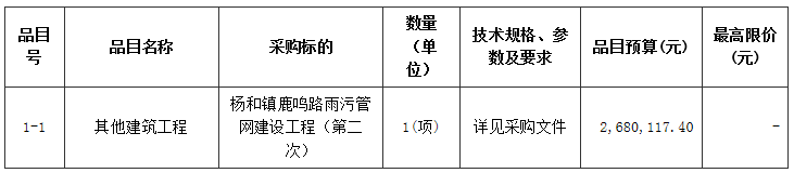合同包1(杨和镇鹿鸣路雨污管网建设工程(第二次)):
