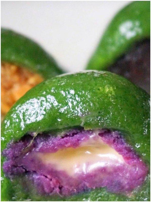 青团馅料:紫薯 炼乳 芝士片 红豆 黄油 红糖 咸蛋 肉松(三种馅料)