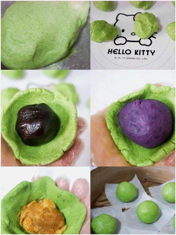 4. 把面团分成一小团一小团 包上准备好的馅料。