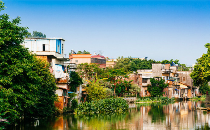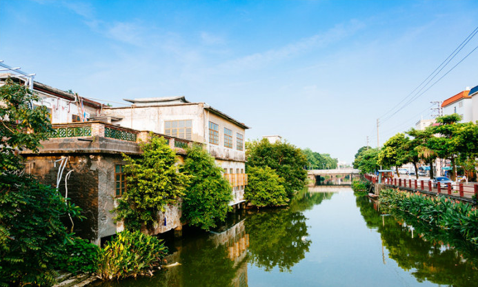河水清澈,因为有了浓密的枝叶映照,变得更加碧绿起来。花花草草真是蓊郁逼人,绿得苍翠,红得发紫,都在欢欢喜喜地生长。注目远眺深处的幽幽榕冠,竟有些城里人难得的闲适之态。80年代的房屋有些个性,楼房多平顶,铺满瓷砖和琉璃瓦,色彩也是缤纷灿烂。