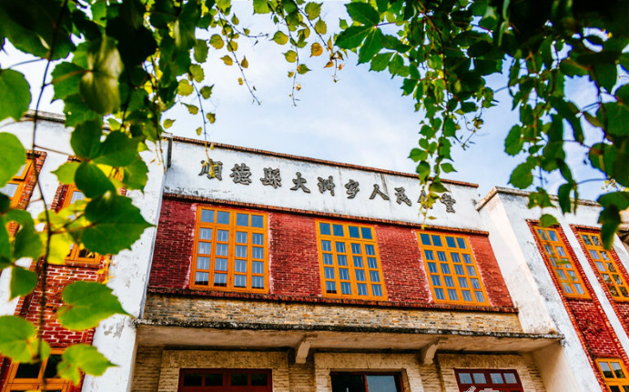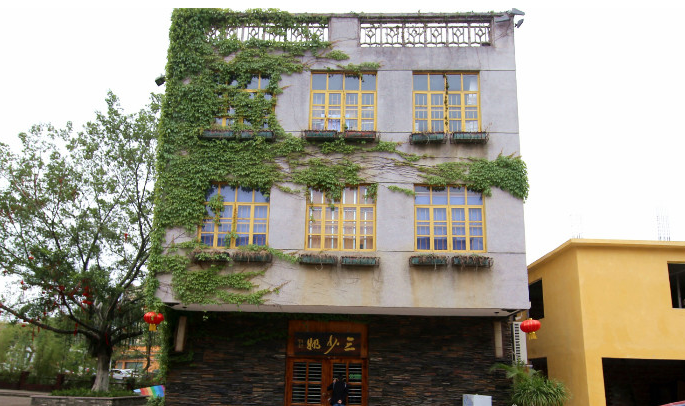 678,既是街道长度的数量,也是街道两旁房屋建筑的年代,掐指算算,最早起于60年代的房屋,也有半个多世纪了。人民会堂可做60年代建筑的代表了,白墙,多用石,窗户不大,也被等分成十个方形,覆上玻璃,方方正正,规规矩矩;窗户的边沿,用红砖砌成凸出来的围框;墙面少有的花纹也是用红砖砌成,简单,呆板,正如那个年代的思维。