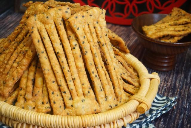 7.看这脆的,吃的时候还得用手接着,不然掉一身渣儿呢,可见它有多脆。我自己做了鸡蛋饼,卷着它吃,还真有点煎饼果子的感觉。配白粥是孩子最爱吃的搭配。老公更简单了,直接嘎嘣嘎嘣地吃了一盘。喜欢的朋友快来试试看吧。