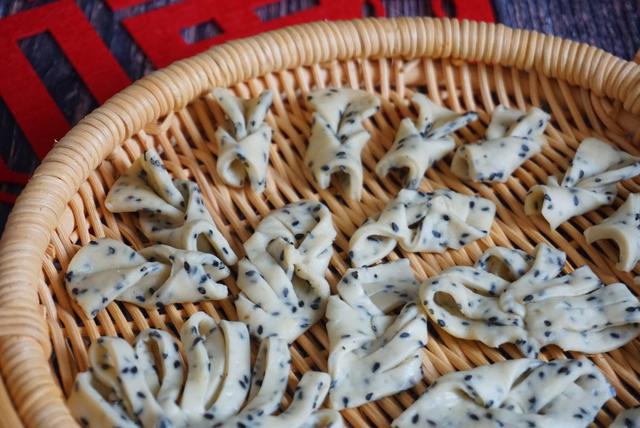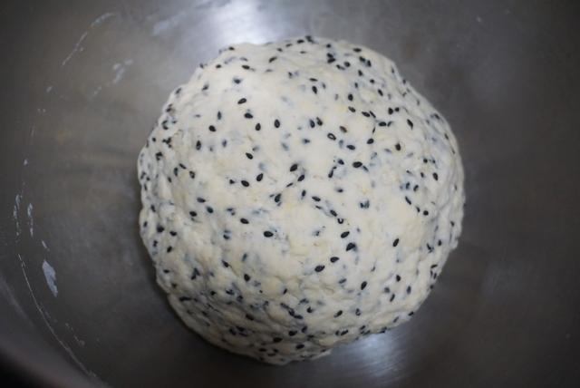 食材:普通面粉300g,凉水120g,鸡蛋2个,盐4g,黑芝麻30g,椒盐粉1小勺。如果做甜味的,就将椒盐换成白糖。
