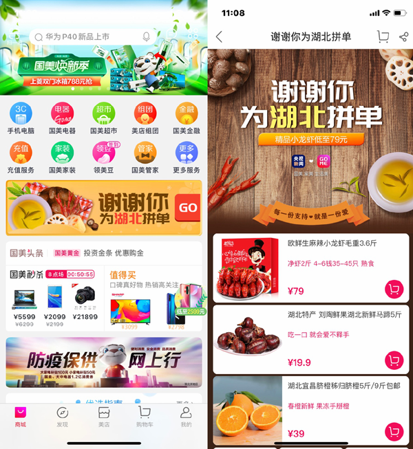 据悉,目前国美已上线“谢谢你为湖北拼单”活动专区,置于国美APP首页,欢迎广大国美用户参与活动为湖北拼一单。在专区内,国美推荐了包括麻辣小龙虾、马蹄果、椴木香菇、鱼腥草、紫砂壶等农特产品,让每一份支持都凝聚成一份爱。