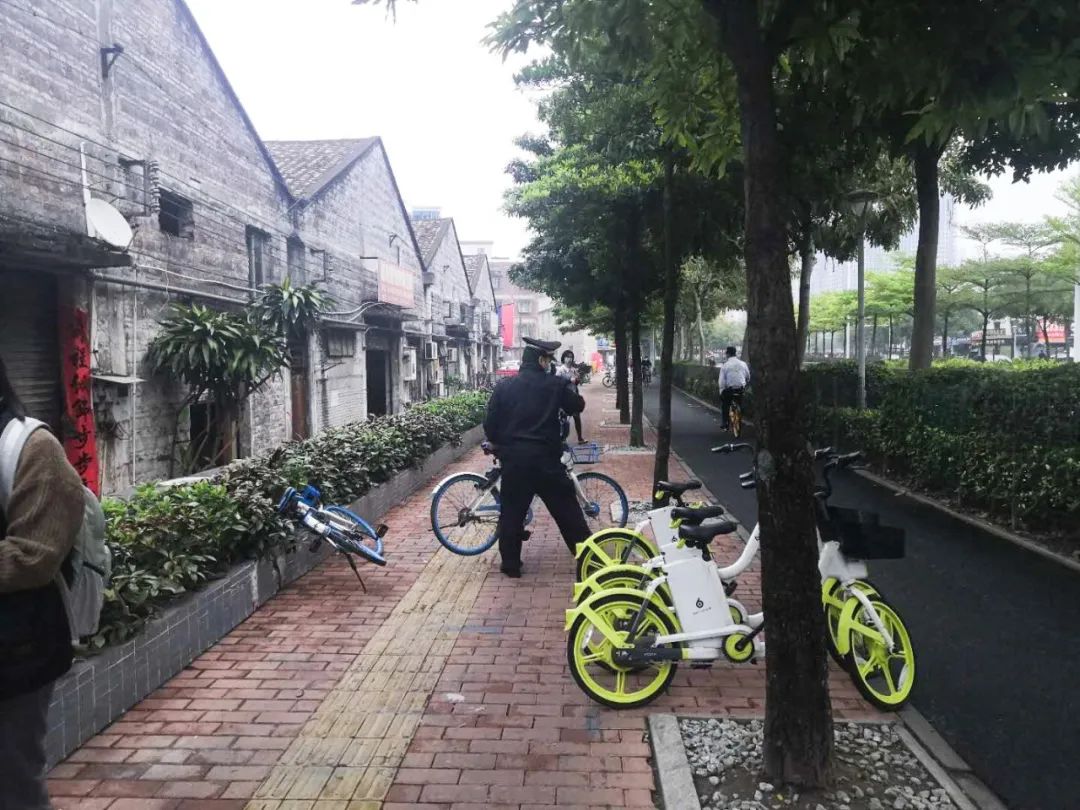 禅城区环境保护和城市管理局祖庙分局(下称“祖庙环城分局”)一方面要求运营商进一步做好共享单车的卫生清理和投放规范;另一方面加强巡查和宣传力度,对不按规定停放共享单车的群众进行劝导,引导其规范有序停放车辆,切实做好疫情期间的市容市貌工作。