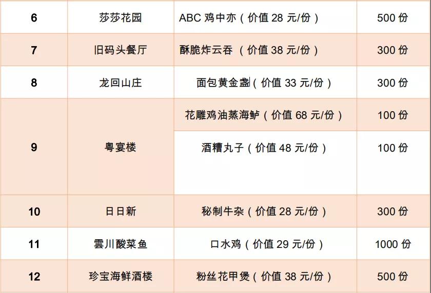 提前预告:今天晚上8点、9点分批派发美食券哦!