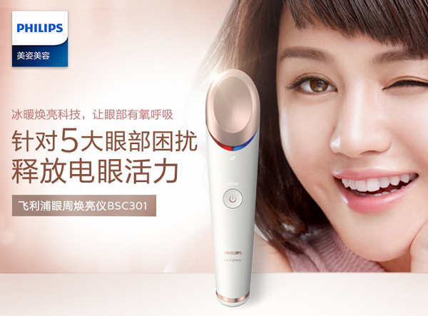飞利浦BSC301/05美容仪是一款专门针对眼部肌肤问题的美容仪,采用“冰暖焕亮科技”,通过冰感与热感的不同功效,温和运用于柔嫩的眼部肌肤中,从而缓解人们眼部周围的肌肤问题,也能够缓解因为长时间用眼而导致的眼睛疲劳和干涩的问题。