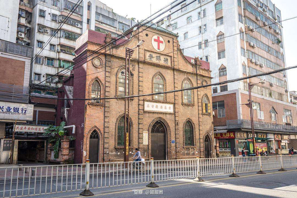 佛山市基督教赉恩堂,三层哥特式红砖建筑。原名叫莲花礼拜堂,由本地信徒李承恩女士发动国内属会(即神召会)信徒捐款筹建,建于1923年,是佛山市最早的一件教堂,也是佛山市区现存最为完整、仍在使用的基督教堂。