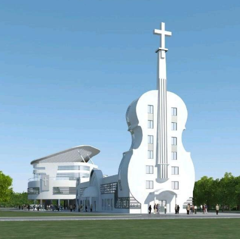 盐步堂外观似一座小提琴雕塑,既典雅华贵,又静谧通幽,携乐器皇后之尊贵,展后现代基督教之风采,如新妇妆饰整齐,伫立在河畔等候(启示录21:2),演绎了一部现代建筑芭蕾。其主体建筑八层,一楼主堂、接待室、图书室;二楼副堂、母婴室、主日学;三楼四楼诗班室、慕道室,空中花园;五楼六楼双标客房;七楼传道人宿舍;八楼祈祷室。小提琴总高为38米,力求高擎十字架,让赞美飞扬,其背后的设计理念如下: