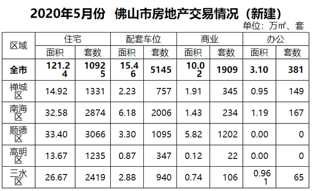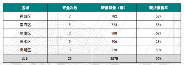 5月佛山开盘情况。来源于广东粤湾数据研究院