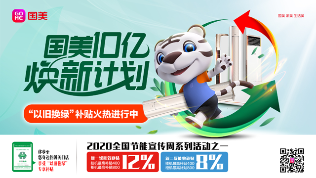 近年来,国家各部委也都在推动绿色消费、绿色生活、绿色产品生产与普及。国家发展改革委等七部委在去年联合印发的《绿色高效制冷行动方案》中提出,要通过实施“节能补贴”“以旧换绿”等措施,促进绿色高效制冷消费。为积极响应国家绿色行动号召,加速新能效空调推广、推动绿色消费,助力绿色生活走进千家万户,7月6日起,国美将在全国范围开展为期2个月的主题为“国美10亿焕新计划”的补贴活动,助力空调“以旧换绿”。