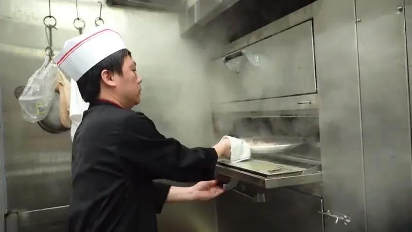 把卷好的绉纱鱼卷放入蒸箱蒸熟