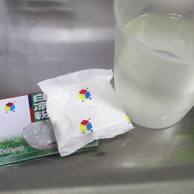 1、白凉粉可在网店里买到,50克粉按比例做,可以做好几大碗;2、配料可按喜好的口味来调整,没有特别固定的。
