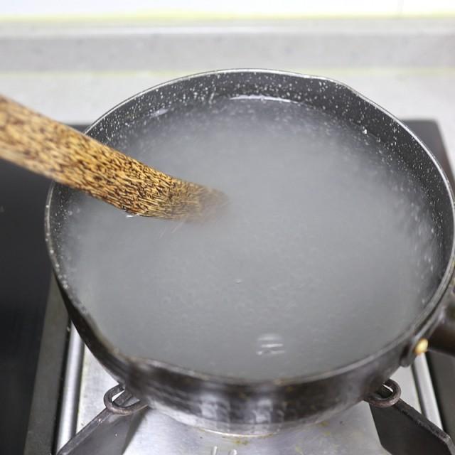 第5步、这是熬好的白凉粉,也是冰粉热时的状态,有微微的白色,呈稍粘稠的浆状。